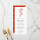 Um menu de comida vívido e único estilo Dragon e Phoenix adaptado ao seu evento com um tema semelhante. Funciona para vários eventos, seja janto de ensaio, janto de recepção ou festa de noivado. Embaixo do dragão vermelho no centro superior estão pontos para as informações do menu de eventos.