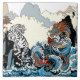 Azure Dragon e White Tiger Encontram-se em Waterfall. Animais de feng shui celestial. Ilustração de Insima