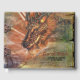 Livro de hóspedes do estilo conto de fadas feito em fundo verde e cor de ferrugem, com gráficos de dobradiças antigas e dragões fabulosos. Personalize o texto negro para o dia do seu casamento.
