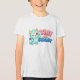Dragão turquesa adorável e fofinho com bochechas rosadas e letras cor-de-rosa divertidas, ideal para roupas e looks alegres e caprichosos.