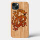 Dragão Vermelho no Estilo Oriental, sortudo, renderizado como uma escultura de grãos de madeira de bambu. Um design de estilo asiático e um ícone universal fazem uma impressão. Mensagem