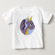 Baby T-Shirt com ilustração da cabeça de um dragão voador roxo giro em círculo azul, conto de fadas / design de fantasia para crianças por Maxi Harmony