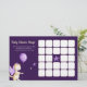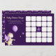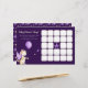 Bingo de chá de fraldas roxo bonito para sua celebração com um dragão bonito segurando um balão violeta. Excelente para chás de fraldas de meninas de gênero. Ilustrada e projetada por Patricia Alvarez.