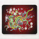 Dragão verde entre flores em um fundo vermelho e preto do inclinação da cor.