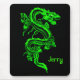 Tapete do rato preto bonito com um dragão verde-claro de vista legal do estilo chinês. Personalize o nome no texto verde a qualquer coisa que você quer. Faz um grande presente para qualquer um na fantasia e nos dragões. Vem em um dragão azul igualmente, a relação abaixo.