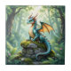Azulejo temático do dragão. Um dragão branco, renderizado em um estilo detalhado de ilustração aquática, perfura sobre uma antiga ruína de pedra coberta de musgo. A luz solar filtra através da cobertura densa da floresta, iluminando os movimentos de poeira dançando no ar. A balança do dragão brilha com matizes iridescentes, e seus olhos seguram uma gentil, sabedora, divertida arte de fantasia.