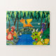 Quebra-cabeça de jogo mostrado com um impressão de desenho animado de dragões bonitos. Personalize este item ou comprar como está. Imagem do stock vecteezy.com