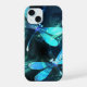 Duas libélulas transparentes, luminosas, turquesas, desenhadas artisticamente sobre fundo noturno, com algas e vagalumes luminescentes do lago. Dragonfly brilhante.