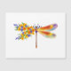 Pintura artificial, libélula floral em laranja e roxo contrastantes com papoila amarela, brilhante e florescente da Califórnia e flores silvestres azuis em fundo branco.