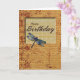 Um lindo gráfico de libélula azul adorna este cartão de aniversário. Um bronzeado suave com cobrir de escrita manual na frente.