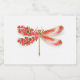 Articulado artificialmente, ouro, libélula joalhada com vermelho e asas decoradas com cereja japonesa vermelha, florescente e joalhada sobre fundo branco. Dourada Dragonfly.
