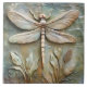 Um alivio de falso cerâmico tranquilo de uma libélula voando entre as gramíneas, evocando a beleza pacífica da natureza.