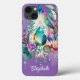 Essa capas de iphone mágica de caçador de sonhos apresenta um grande cristal com flores delicadas, folhagem e gemas penduradas em fundo lavanda. Personalizado com seu nome. A cor ou fonte de fundo pode ser alterada usando o botão de edição. Faz um presente excelente para aniversários, formatura ou Natal!