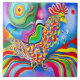 "Dreamscape Bird". Numa paisagem surreal de sonho, um cockerel caminha confiantemente, suas penas enfeitadas num caleidoscópio de matizes, ofuscando as linhas entre a realidade e a fantasia. Um abstrato surreal colorido de um cockerel com atitude. Versão quadrada.