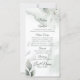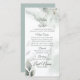 Menu de casamento | Espalho de aquarelas com folhagem verde poeirenta pintada à mão. Design criado para o BarefootBride™ por © WhimsicalArtwork™ Personalize texto, estilo de letra, cor e tamanho. Criamos esta modelo para facilitar a personalização com suas próprias informações.