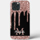 Uma brilhante, moderna e esbranquiçada rosa dourada, goteja o nome personalizado e a capas de iphone monográfica. Este design apresenta um brilho brilhante cor rosa-rosa cor-de-rosa cor-rosa pálido sobre fundo preto com modelo de texto personalizado monograma inicial e nome próprio. Um presente feminino perfeito para mulheres e raparigas que amam coisas bonito de brilho. Se precisar de ajuda ou itens correspondentes, entre em contato comigo.