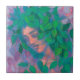 Azulejo cerâmico com pintura colorida de fantasia, espírito de árvore florestal - dryad. Linda mulher com pássaros verdes e violetas deixa como seu cabelo. Fantasia / arte surreal, retrato imaginário. Pintura pastel, pastéis macios em papel, 43 x 49 cm, 2020 © Clipso-Callipso / Julia Khoroshikh www.clipsocallipso.art #clipsocallipso #fantasyart #imaginaryretrtrit #surreal #espirituofnature #madeira #ceramictile #homeaccents #kitchendecoridea ideias decorativas do banheiro