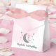 Duas da lua! segundo aniversário com lua prateada e estrelas com fundo de cor rosa