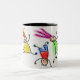 Uma caneca branca e preta com design de desenho animado para crianças divertidas.