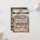 O lado frontal tem um design impresso nos cantos superiores e um arco impresso e uma camada desbotada de retângulo para ler mais facilmente o texto. O texto é um impressão de estilo tipográfico. Esses anúncios de casamento rústicos são perfeitos para um casamento no oeste do país, casamento rústico, um casamento de vaqueiro, jogadores de ferradura, ou para qualquer noiva que queira um convite aflita, mas gosta do olhar elegante do design de renda impresso.