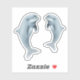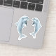 Folhas de adesivos de golfinhos com cinzas, golfinhos de gargalo. Ambos os golfinhos estão em pé com caudas na água. As folhas vêm em vários tamanhos e podem ser usadas em livros de recortes ou como favoritos para festas para crianças. Celebre o verão ou o aniversário de qualquer criança com esta design divertida.