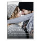 Este moderno cartão Save the Date começa com a fotografia do seu casal. Salve a data é escrita em grande caligrafia branca-na moda. Duas linhas de texto abaixo permitem personalizar sua mensagem. Uma camada especial garante que seu texto branco será pop, não importa a sua foto. Dentro na placa há outra foto e uma mensagem mais longa para você personalizar.