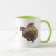A galinha gorda que veste uma boina quer ir a Provence. A galinha aparece em ambos os lados assim que você pode apreciá-la quando você sorver. Entre as duas galinhas são as palavras "tomam-me a Provence"