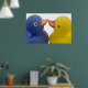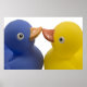 Two rubber ducks in love. A cute poster with a blue and yellow duckies kissing. Perfect for the one you love to celebrate your anniversary or valentines day.