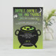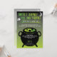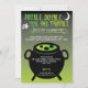 Convite de festas com 'duplo, duplo papel e problema' em uma fonte assustadora. Este convite apresenta um esquema de cores preto e verde com um caldeirão e design de tema bruxas. Personalize este convite divertido para uma festa de Dia das Bruxas para crianças ou adultos e envie para seus amigos e família para espalhar a palavra sobre seu evento assustador!