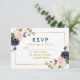Placa RSVP de Casamento de Quadro Dourado Azul Cor Floral Cor-de-Rosa Azul