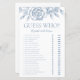 Esta folha de chá de panela é elegante, moderna, chique e encantadora - perfeita para um jardim, botânico, rústico, romântico, floral, formal ou casamento vintage. A sua combinação requintada de rosas azuis graciosos e poeirentos e verde sábia é fluida, delicada e bela. Sua design monocromática é impressionante e clássica. Este jogo fácil e divertido traz muitas risadas a qualquer chá de panela! Basta dar uma folha a cada convidado (não se esqueça das canetas) e deixar começar a adivinhação! Para fazer deste jogo, basta selecionar Personalizar este modelo e digitar os nomes da noiva e do noivo.