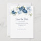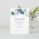 Casamento elegante de buquê floral azul empoeirado, branco e marinho floral, salve o cartão de data. O cartão apresenta um script "Salvar a Data", que pode ser alterado para um tipo de fonte de sua escolha, disponível aqui quando você clica no botão "Personalizar".