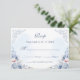 This elegant RSVP design features soft dusty blue watercolor flowers, delicate blush accents, and refined French garden scrollwork. The classic layout creates a timeless and romantic look that complements formal, vintage-inspired, and traditional wedding celebrations. Its airy floral styling feels graceful and polished, making it a beautiful choice for coordinating with a full dusty blue wedding stationery suite. The ornamental details and soft color palette add a sophisticated finish that works especially well for spring and summer weddings.