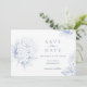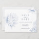 Casamento de Dusty Blue Hydrangea Salve o casamento legante do Cartão de Dança Salve o Cartão de Datas em azul empoeirado e branco com lindas flores de hydrangea. Este casamento Salve o Cartão de Data é clássico e delicado, com um design minimalista e moderno.