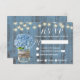 Placas RSVP/Resposta Azul Rústica Hydrangea & String Luzes Azul Dusty.