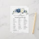 Chá de panela floral azul empoeirado O que há na sua folha de jogo com bolsa apresentando buquê elegante de azul marinho, azul real, branco, marfim champanhe, rosa de cor esbranquiçada, botões de flores ranunculus e folhas verdes de eucalipto sábio e buquê elegante de cor d'água. Entre em contato comigo para obter ajuda sobre a personalização ou se você precisar de outro produto com este design.