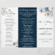 Este programa de casamento triplo apresenta azul empoeirado, branco, ouro, flores de rosa e eucalipto. Personalize com seus detalhes de casamento e encontre designs correspondentes na minha loja "DreamHut".