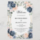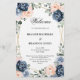 Programa de casamentos geométricos florais azuis empoeirado com buquês elegantes de marinho/Azul empoeirado, branco, branco, rosa de pêssego e verde-sábio, folhas de eucalipto e elegante quadro geométrico neutro de brilho. Entre em contato comigo para obter ajuda sobre a personalização ou se você precisar de outro produto com este design.