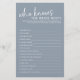 Dê um pontapé no chá de panela com o Dusty Blue que conhece o melhor jogo de Chá de panela da noiva! Esse jogo minimalista adiciona talento moderno a qualquer chá de panela com seu design limpo e contemporâneo. Com levantamentos atentos para revelar a personalidade e as preferências da noiva, este jogo incentiva risos e competição amigável entre os convidados. A noiva ficará encantada em descobrir quem mais presta atenção aos pequenos detalhes que a tornam única.