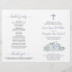 Este belo programa foi projetado para uma cerimônia católica. Ele apresenta um design bócio rústico com rosa de aquarela pintada manualmente, flores, folhas de eucalipto e verde em tons de azul empoeirado e verde-sábio. Há um crucifixo ou cruz, com elegante caligrafia para os nomes dos casais e títulos. O dentro estendeu o espaço para todos os detalhes da cerimônia, enquanto o verso tem informações sobre a festa noiva junto com uma breve nota de agradecimento. É uma bela maneira de dar as boas-vindas aos seus convidados e facilitar-lhes o seguimento da cerimônia. Nota: Os programas são enviados como folhas de papel achatadas, você mesmo precisará dobrá-las.