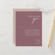 Este cartões de agradecimentos Dusty Boho Purple e Rosa é perfeito para o seu colorido casamento de feiticeiros. Sua design simples, única e moderna acompanhada por uma escrita minimalista contemporânea, rosa empoeirada, e paleta de cor roxa mauve dá a este produto uma sensação clássica de boêmia chica. Mantenha-o como está ou escolha personalizá-lo com trabalho de arte ou gráficos de sua escolha. Você também pode procurar outros produtos dentro desta coleção para juntar todo o seu casamento!