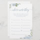 Entretenham seus hóspedes com este divertido jogo "onde eles estavam", mostra a romântica cor d'água floral em azul empoeirado e verde-sábio, e a escritura na moda, simples e elegante, excelente para o chá de panela do livro moderno, festas de casamento do jardim botânico. Veja todos os jogos de chá de panela na coleção.