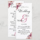 Esta Placa do Programa de Cerimônia de Casamento de Script Moderno Floral Dusty Pink Boho pode ser facilmente personalizada adicionando seus próprios detalhes.
