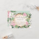 Cartão RSVP, de formato botânico russo, com folhas elegantes de cor aquosa verde e rosas poeirentos de jardim rosa