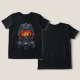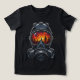 This striking digital artwork depicts a metallic gas mask with a visor reflecting a dramatic urban skyline at sunset, blending apocalyptic vibes with vibrant orange skies and silhouetted towers against a dark void, ideal for customizing edgy apparel, stickers, or tech cases with a futuristic edge.