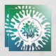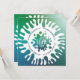 Convite de festas azul, verde e turquesa do arco-íris azul-3D. Divertido, brilhante convite de festas moderno. Parte de uma coleção correspondente.