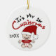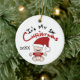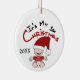 Um bebê em boné vermelho e polka pontilhado com texto que diz "É o meu natal de rua" em um ornamento de feriado que você pode facilmente mudar a data antes de fazer o pedido.