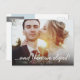 Deixe seus amigos e familiares por dentro das notícias com este anúncio de fuga para se casar leve e com foto. Uma mensagem divertida e gradiente escuro sobrepõem sua foto favorita do dia do casamento. O design é adequado para layouts de paisagem ou retrato. Use o verso do cartão-postal para incluir detalhes da sua celebração/recepção local futura.