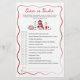 Como seus convidados conhecem a noiva? Este cartão de jogo "Sobre ou Sob?" é uma forma divertida de testar o conhecimento dos convidados com fatos peculiares e palpites divertidos. Projetado com um fundo branco, uma escrita vermelha romântica e ilustrações caprichosas da comida italiana, ela combina perfeitamente com o vosso decoro temático do chá. Os convidados adivinham se cada declaração está acima ou abaixo do número real - risos garantidos!