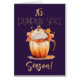 É a estação de especiarias de abóbora! Esta design apresenta uma imagem gráfica fofa de um latte de especiaria de abóbora com folhas de queda decorativas numa caneca em forma de abóbora. Se você optar por editar o design personalizado, poderá alterar a cor de fundo, o texto, as fontes, bem como ajustar ou mover a imagem. O dentro foi deixado como vazio, no entanto, você pode adicionar texto facilmente durante a edição clicando no botão "adicionar texto".